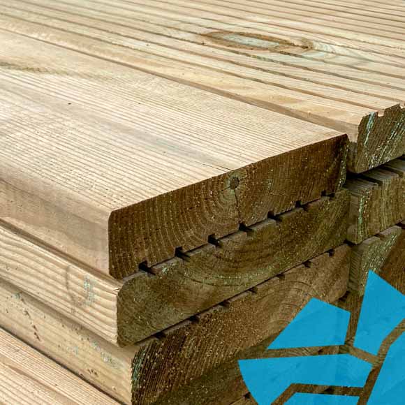 27x144 Finish x 4.8m Smooth & Grooved Treated Decking 70% PEFC Cert.