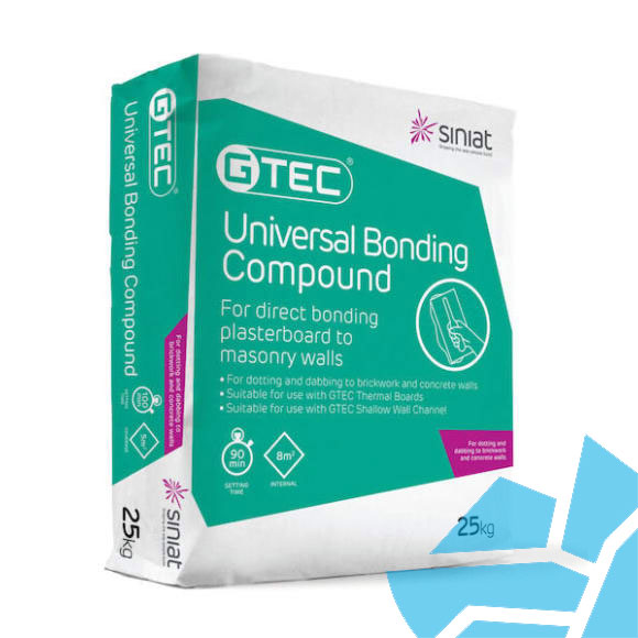 GTEC Bonding Compound 25kg - A gypsum-based solution for plasterboard bonding and minor surface correction. Achieve a smooth, flat finish with the Siniat Direct Bond Lining system, securely bonding Siniat Board to masonry substrates.