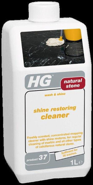 HG Natural Stone Shine Restoring Cleaner Wash & Shine 1 Litre (Reduced to Clear) - Keep your natural stone floor clean and shiny with the HG natural stone cleaner and shine restorer. This highly-concentrated mopping cleaner is infused with a refreshing scent and specially designed for regular cleaning of marble and other types of calciferous natural stone.